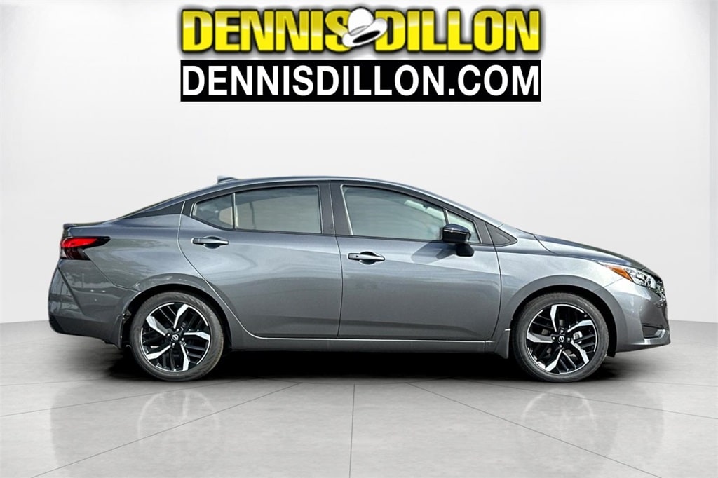 Gun Metallic 2025 Nissan Versa 1.6 SR 4D Sedan FWD CVT 1.6L I4 DOHC 16V 17" Aluminum Alloy Wheels, 6 Speakers, ABS brakes, Air Conditioning, Alloy wheels, AM/FM radio: SiriusXM, Apple CarPlay/Android Auto, Auto High-beam Headlights, Automatic temperature control, Blind Spot Warning, Brake assist, Bumpers: body-color, Carpeted Floor Mats & Trunk Mat (5-Piece Set), Delay-off headlights, Driver door bin, Driver vanity mirror, Dual front impact airbags, Dual front side impact airbags, Electronic Stability Control, Emergency communication system, Front anti-roll bar, Front Bucket Seats, Front Center Armrest, Front reading lights, Front wheel independent suspension, Fully automatic headlights, Heated door mirrors, Heated Front Bucket Seats, Heated front seats, Illuminated entry, Knee airbag, Leather steering wheel, Low tire pressure warning, Occupant sensing airbag, Outside temperature display, Overhead airbag, Panic alarm, Passenger door bin, Passenger vanity mirror, Power door mirrors, Power steering, Power windows, Radio data system, Radio: AM/FM Audio System, Rear Parking Sensors, Rear side impact airbag, Rear window defroster, Remote keyless entry, Shopping Bag Hooks, Speed control, Splash Guards, Split folding rear seat, Spoiler, SR Fabric Seat Trim, Steering wheel mounted audio controls, Tachometer, Telescoping steering wheel, Tilt steering wheel, Traction control, Trip computer, Trunk Net, Trunk Package, Turn signal indicator mirrors, Variably intermittent wipers.