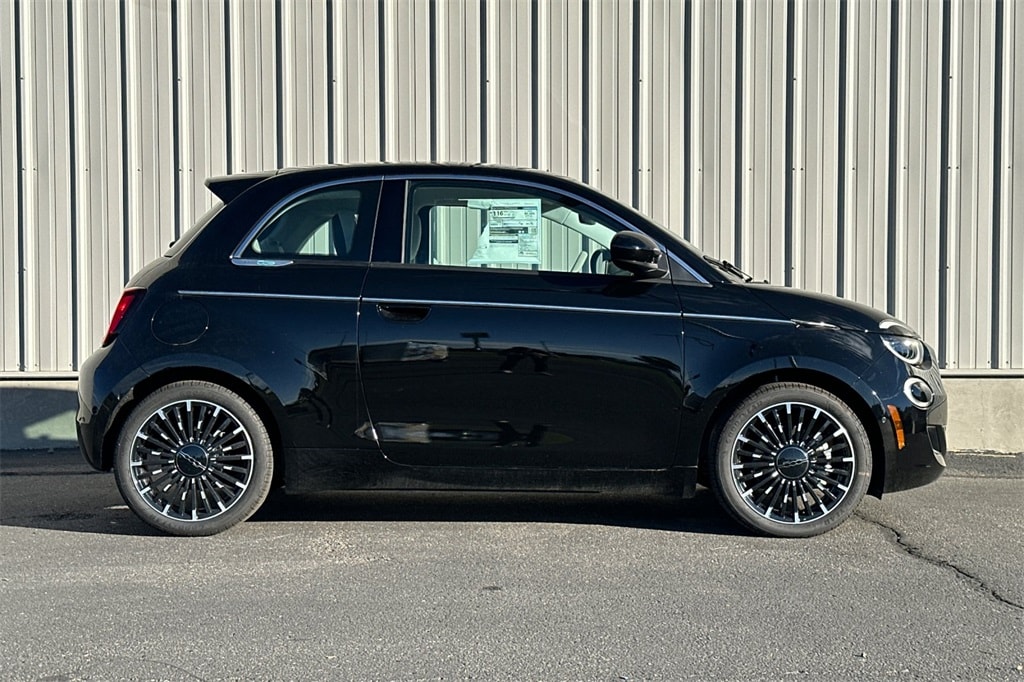 $7,596 off MSRP! 2024 Fiat 500e Tuxedo Black Battery Electric FWD 1-Speed Automatic Electric 2D Hatchback 6 Speakers, ABS brakes, Active Lane Management System, Air Conditioning, Alloy wheels, AM/FM radio: SiriusXM, Anti-whiplash front head restraints, Auto-Dimming Rear-View Mirror, Automatic temperature control, Body Color Exterior Mirrors, Brake assist, Bumpers: body-color, Chrome Exterior Accents, Cloth Bucket Seats w/Red Accents, Compass, Delay-off headlights, Driver door bin, Dual front impact airbags, Dual front side impact airbags, Electronic Stability Control, Front anti-roll bar, Front Bucket Seats, Front Center Armrest, Front dual zone A/C, Front reading lights, Front wheel independent suspension, Fully automatic headlights, Heated Exterior Mirrors, Illuminated entry, Inspired by Music, Knee airbag, Low tire pressure warning, Manufacturer's Statement of Origin, Navigation System, Occupant sensing airbag, Outside temperature display, Overhead airbag, Overhead console, Panic alarm, ParkSense Fr/Rr/Side Park Assist, ParkView Rear Back-Up Camera, Passenger door bin, Passenger vanity mirror, Power door mirrors, Power steering, Power windows, Premium audio system: Uconnect 5.0, Quick Order Package 21L Music, Radio data system, Radio: Uconnect 5 Nav w/10.25" Display, Rain sensing wipers, Rear anti-roll bar, Rear window defroster, Rear window wiper, Remote keyless entry, Security system, Speed control, Split folding rear seat, Spoiler, Sport steering wheel, Steering wheel mounted audio controls, Technoleather Steering Wheel, Telescoping steering wheel, Tilt steering wheel, Traction control, Trip computer, Variably intermittent wipers, Wheels: 17" x 7.0" Aluminum Multi-Spoke, Windshield Wiper De-Icer.