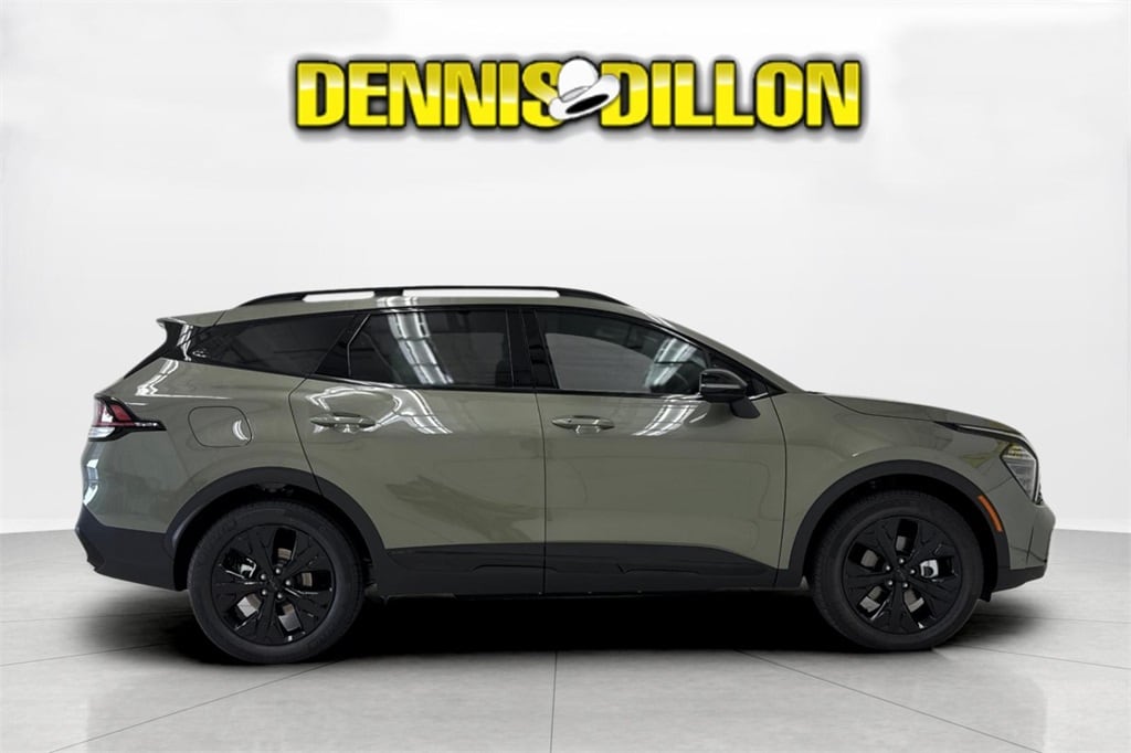 Jungle Green 2025 Kia Sportage Plug-In Hybrid X-Line AWD 6-Speed Automatic I4 4-Wheel Disc Brakes, 6 Speakers, ABS brakes, Air Conditioning, Alloy wheels, AM/FM radio: SiriusXM, Apple CarPlay & Android Auto, Auto High-beam Headlights, Automatic temperature control, Brake assist, Bumpers: body-color, Cargo Mat, Carpeted Floor Mats X-Line, Compass, Delay-off headlights, Driver door bin, Driver vanity mirror, Dual front impact airbags, Dual front side impact airbags, Electronic Stability Control, Emergency communication system, Four wheel independent suspension, Front anti-roll bar, Front Bucket Seats, Front Center Armrest, Front dual zone A/C, Front reading lights, Fully automatic headlights, harman/kardon® Speakers, Heated door mirrors, Heated Front Bucket Seats, Heated front seats, Illuminated entry, Leather steering wheel, Low tire pressure warning, Navigation System, Occupant sensing airbag, Outside temperature display, Overhead airbag, Overhead console, Panic alarm, Passenger door bin, Passenger vanity mirror, Power door mirrors, Power driver seat, Power Liftgate, Power moonroof, Power steering, Power windows, Premium SynTex Leatherette Seat Trim, Radio: AM/FM/HD Audio System, Rain sensing wipers, Rear anti-roll bar, Rear reading lights, Rear seat center armrest, Rear side impact airbag, Rear window defroster, Rear window wiper, Remote keyless entry, Security system, Speed control, Speed-sensing steering, Split folding rear seat, Spoiler, Steering wheel mounted audio controls, Tachometer, Telescoping steering wheel, Tilt steering wheel, Traction control, Trip computer, Turn signal indicator mirrors, Variably intermittent wipers, Wheels: 7.5J x 19" Gloss Black Alloy.