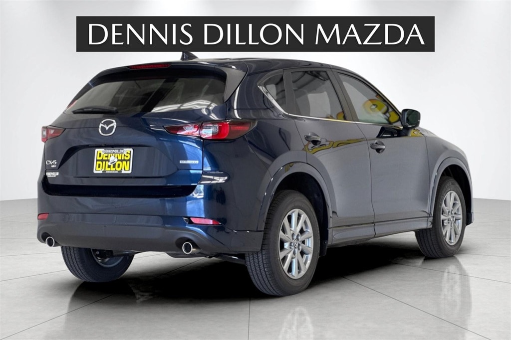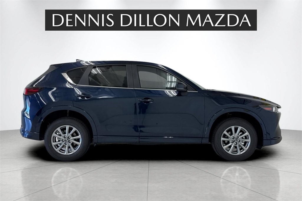 Deep Crystal Blue Mica 2025 Mazda CX-5 2.5 S Select Package AWD 6-Speed Automatic SKYACTIV® 2.5L 4-Cylinder DOHC 16V 4-Wheel Disc Brakes, 6 Speakers, ABS brakes, Air Conditioning, All-Weather Floor Mats, Alloy wheels, AM/FM radio, AppLink/Apple CarPlay and Android Auto, Auto High-beam Headlights, Automatic temperature control, Brake assist, Bumpers: body-color, Cargo Tray, Delay-off headlights, Driver door bin, Driver vanity mirror, Dual front impact airbags, Dual front side impact airbags, E911 Automatic Emergency Notification, Electronic Stability Control, Emergency communication system: MAZDA CONNECT, Exterior Parking Camera Rear, Four wheel independent suspension, Front anti-roll bar, Front Bucket Seats, Front Center Armrest w/Storage, Front dual zone A/C, Front reading lights, Fully automatic headlights, Heated Front Bucket Seats, Heated front seats, Illuminated entry, Infotainment System Voice Command, Leather Shift Knob, Leather steering wheel, Leatherette Seat Trim, Low tire pressure warning, Multifunction Commander Control, Occupant sensing airbag, Outside temperature display, Overhead airbag, Overhead console, Pandora, Panic alarm, Passenger door bin, Passenger vanity mirror, Power door mirrors, Power driver seat, Power steering, Power windows, Radio Broadcast Data System Program Information, Radio data system, Radio: AM/FM/HD Audio System, Rain sensing wipers, Rear anti-roll bar, Rear reading lights, Rear seat center armrest, Rear window defroster, Rear window wiper, Remote keyless entry, SMS Text Msg Audio Delivery & Reply, Speed control, Speed-sensing steering, Split folding rear seat, Spoiler, Steering wheel mounted audio controls, Tachometer, Telescoping steering wheel, Tilt steering wheel, Traction control, Trip computer, Turn signal indicator mirrors, Variably intermittent wipers, Wheels: 17 x 7J Aluminum Alloy.