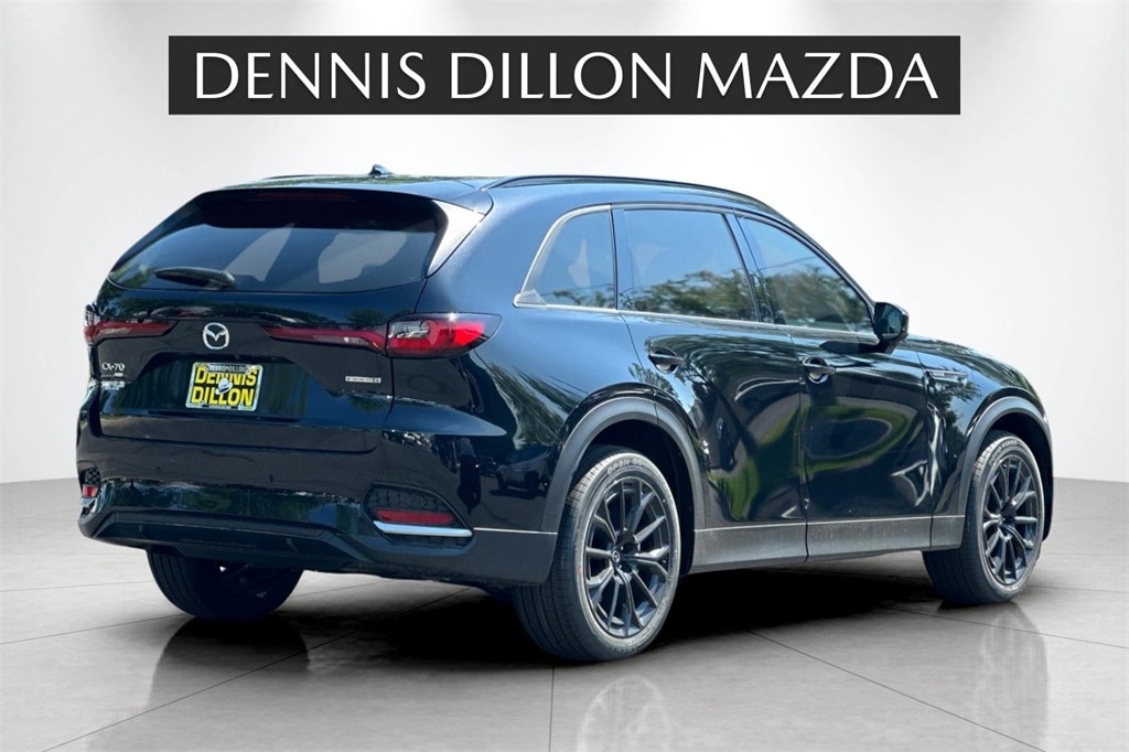 Jet Black Mica 2025 Mazda CX-70 3.3 Turbo Premium Plus AWD 8-Speed Automatic I6 Turbo 12 Speakers, 4-Wheel Disc Brakes, ABS brakes, Air Conditioning, Alloy wheels, AM/FM radio: SiriusXM, Auto High-beam Headlights, Auto-dimming door mirrors, Auto-dimming Rear-View mirror, Automatic temperature control, Brake assist, Bumpers: body-color, Compass, Delay-off headlights, Driver door bin, Driver vanity mirror, Dual front impact airbags, Dual front side impact airbags, E911 Automatic Emergency Notification, Electronic Stability Control, Emergency communication system: MAZDA CONNECT, Four wheel independent suspension, Front anti-roll bar, Front Bucket Seats, Front Center Armrest w/Storage, Front dual zone A/C, Front reading lights, Fully automatic headlights, Garage door transmitter: HomeLink, Heads-Up Display, Heated door mirrors, Heated front seats, Heated rear seats, Heated steering wheel, Heated/Ventilated Front Bucket Seats, Illuminated entry, Infotainment System Voice Command, Knee airbag, Leather Shift Knob, Leather steering wheel, Low tire pressure warning, Mazda Connected Services, Mazda Online Navigation, Memory seat, Nappa Leather Seat Trim, Navigation system: MAZDA CONNECT, Occupant sensing airbag, Outside temperature display, Overhead airbag, Overhead console, Pandora Internet Radio Integration, Panic alarm, Passenger door bin, Passenger vanity mirror, Power door mirrors, Power driver seat, Power Liftgate, Power moonroof, Power passenger seat, Power steering, Power windows, Radio Broadcast Data System Program Information, Radio data system, Radio: AM/FM w/Bose Premium Audio Sound System, Rain sensing wipers, Rear air conditioning, Rear anti-roll bar, Rear reading lights, Rear seat center armrest, Rear window defroster, Rear window wiper, Remote keyless entry, Security system, SMS Text Msg Audio Delivery & Reply, Speed control, Speed-sensing steering, Split folding rear seat, Spoiler, Steering wheel mounted audio controls, Tachometer, Telescoping steering wheel, Tilt steering wheel, Traction control, Trip computer, Turn signal indicator mirrors, Variably intermittent wipers, Ventilated front seats, Wheels: 21 x 9.5J Aluminum Alloy.