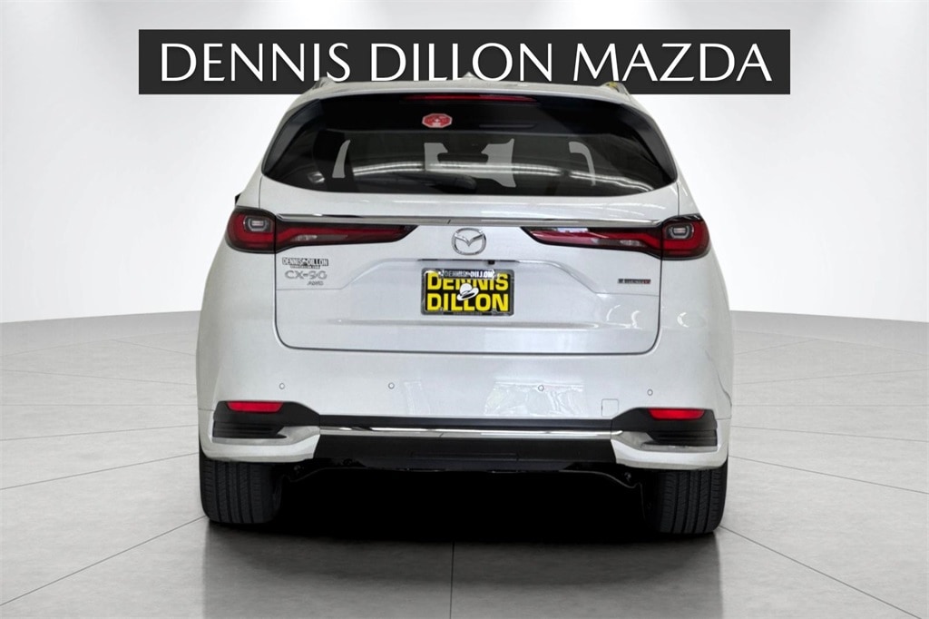 Rhodium White Premium 2025 Mazda CX-90 3.3 Turbo S Premium Plus AWD 8-Speed Automatic I6 Turbo 12 Speakers, 3rd row seats: bench, 4-Wheel Disc Brakes, ABS brakes, Air Conditioning, Alloy wheels, AM/FM radio: SiriusXM, Auto High-beam Headlights, Auto-dimming door mirrors, Auto-dimming Rear-View mirror, Automatic temperature control, Brake assist, Bumpers: body-color, Compass, Delay-off headlights, Digital Rearview Mirror w/HomeLink, Driver door bin, Driver vanity mirror, Dual front impact airbags, Dual front side impact airbags, E911 Automatic Emergency Notification, Electronic Stability Control, Emergency communication system: MAZDA CONNECT, Four wheel independent suspension, Front anti-roll bar, Front Bucket Seats, Front Center Armrest w/Storage, Front dual zone A/C, Front reading lights, Fully automatic headlights, Garage door transmitter: HomeLink, Heads-Up Display, Heated door mirrors, Heated front seats, Heated rear seats, Heated steering wheel, Heated/Ventilated Front Bucket Seats, Illuminated entry, Infotainment System Voice Command, Knee airbag, Leather Shift Knob, Leather steering wheel, Liftgate Garnish, Low tire pressure warning, Mazda Connected Services, Mazda Navigation System, Memory seat, Nappa Leather Seat Trim w/Quilting, Navigation system: MAZDA CONNECT, Occupant sensing airbag, Outside temperature display, Overhead airbag, Overhead console, Pandora Internet Radio Integration, Panic alarm, Passenger door bin, Passenger vanity mirror, Power door mirrors, Power driver seat, Power Liftgate, Power moonroof, Power passenger seat, Power steering, Power windows, Radio Broadcast Data System Program Information, Radio data system, Radio: AM/FM w/HD/Bose 12-Speaker Sound System, Rain sensing wipers, Rear air conditioning, Rear anti-roll bar, Rear reading lights, Rear seat center armrest, Rear window defroster, Rear window wiper, Remote keyless entry, Rhodium White Premium Paint Charge, Security system, SMS Text Msg Audio Delivery & Reply, Speed control, Speed-sensing steering, Split folding rear seat, Spoiler, Steering wheel memory, Steering wheel mounted audio controls, Tachometer, Telescoping steering wheel, Tilt steering wheel, Traction control, Trip computer, Turn signal indicator mirrors, Variably intermittent wipers, Ventilated front seats, Ventilated rear seats, Wheels: 21 x 9.5J Aluminum Alloy.