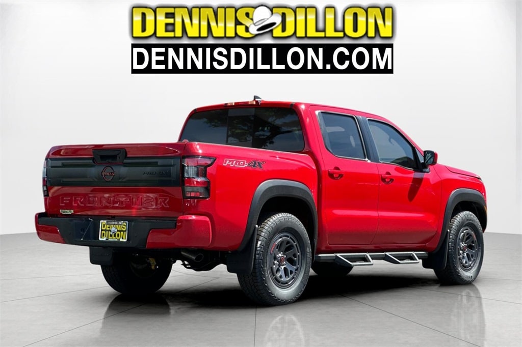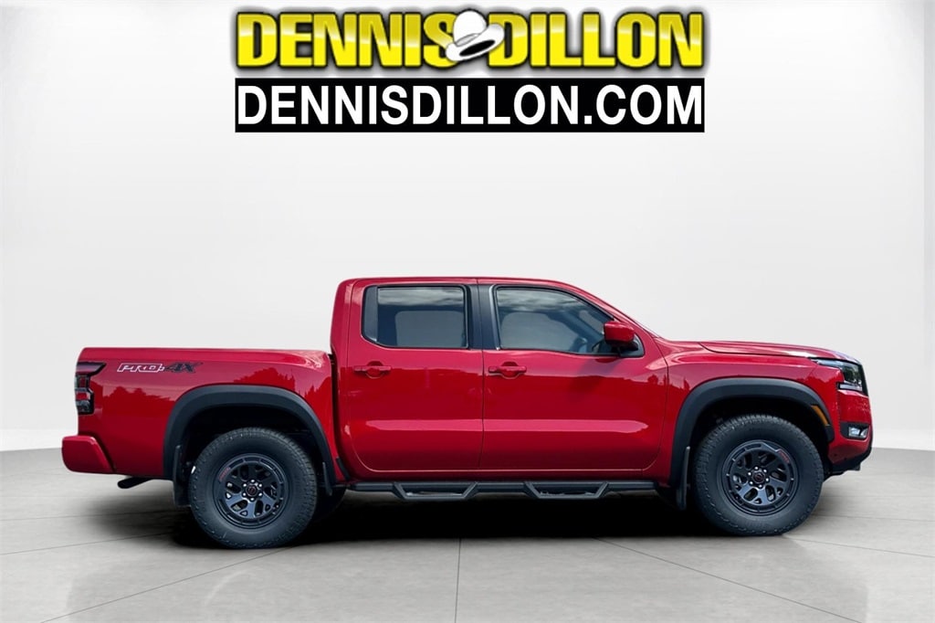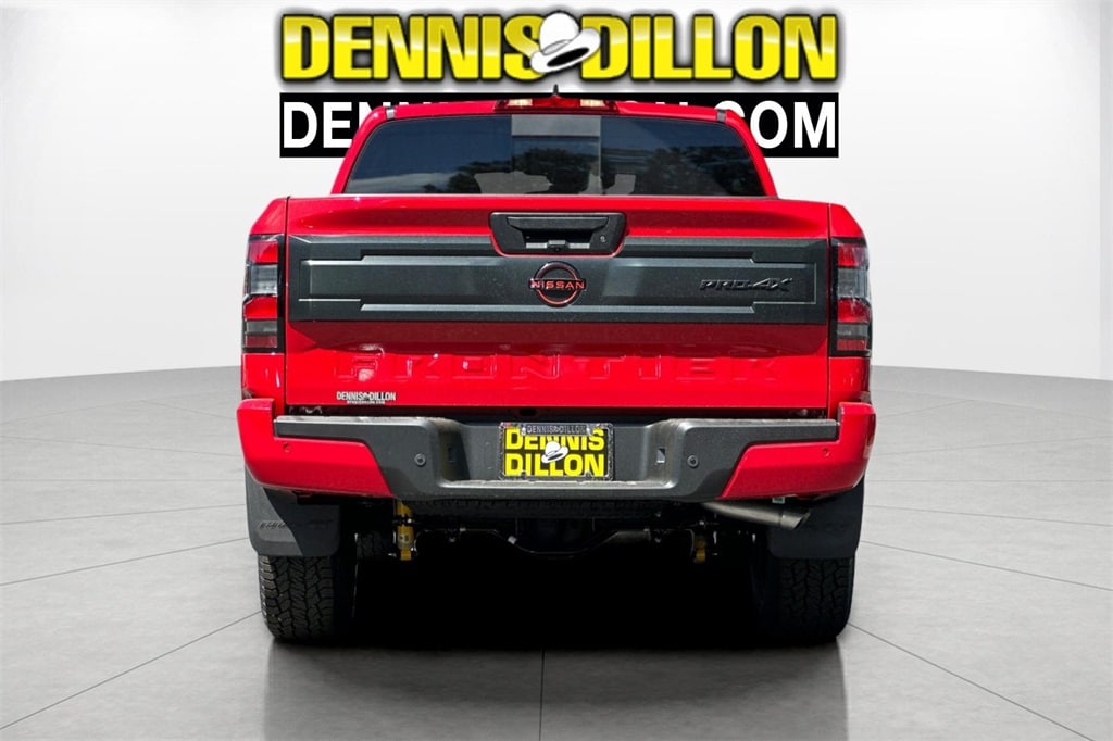 Red Alert 2025 Nissan Frontier PRO-4X 4D Crew Cab 4WD 9-Speed Automatic with Overdrive 3.8L DI DOHC 24V V6 17" Painted Alloy Wheels, 3.692 Axle Ratio, 4-Wheel Disc Brakes, 6 Speakers, ABS brakes, Air Conditioning, Alloy wheels, AM/FM radio: SiriusXM, Anti-whiplash front head restraints, Auto High-beam Headlights, Automatic temperature control, Blind Spot Warning, Brake assist, Bumpers: body-color, Delay-off headlights, Driver door bin, Driver vanity mirror, Dual front impact airbags, Dual front side impact airbags, Electronic Stability Control, Electronic Tailgate Lock, Emergency communication system, Essentials Kit, Front anti-roll bar, Front Bucket Seats, Front Center Armrest, Front dual zone A/C, Front fog lights, Front reading lights, Front wheel independent suspension, Fully automatic headlights, Illuminated entry, Knee airbag, Leather Shift Knob, Leather steering wheel, Low tire pressure warning, Mud Flap Accessory, Occupant sensing airbag, Off-Road Style Step Rails, Overhead airbag, Overhead console, Panic alarm, Passenger door bin, Passenger vanity mirror, Power door mirrors, Power driver seat, Power passenger seat, Power steering, Power windows, PRO Embroidered Premium Cloth Seat Trim, Radio data system, Radio: SXM/AM/FM/AUX/USB Audio System, Rear anti-roll bar, Rear seat center armrest, Rear side impact airbag, Rear step bumper, Remote Engine Starter, Remote Engine Starter Accessory, Remote keyless entry, Security system, Speed control, Speed-sensing steering, Splash Guards (DISC), Split folding rear seat, Steering wheel mounted audio controls, Tachometer, Telescoping steering wheel, Tilt steering wheel, Traction control, Trip computer, USB Charging Cable Kit, Variably intermittent wipers, Voltmeter, Wireless Apple CarPlay/Wireless Android Auto.