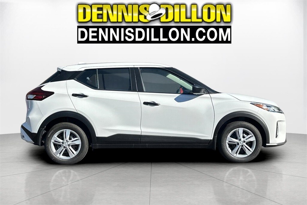 Fresh Powder 2025 Nissan Kicks Play S 4D Sport Utility FWD CVT with Xtronic 1.6L 4-Cylinder DOHC 16V 16" Steel Wheels w/Full Covers, 6 Speakers, ABS brakes, Air Conditioning, AM/FM radio, Apple CarPlay/Android Auto, Auto High-beam Headlights, Blind Spot Warning, Brake assist, Bumpers: body-color, Carpeted Floor Mats w/Cargo Mat, Center Armrest w/Storage, Cloth Seat Trim w/Single Stitch, Driver door bin, Driver vanity mirror, Driver's Seat Mounted Armrest, Dual front impact airbags, Dual front side impact airbags, Electronic Stability Control, Front anti-roll bar, Front Bucket Seats, Front reading lights, Front wheel independent suspension, Fully automatic headlights, Illuminated entry, Knee airbag, Low tire pressure warning, Occupant sensing airbag, Outside temperature display, Overhead airbag, Panic alarm, Passenger door bin, Passenger vanity mirror, Power door mirrors, Power steering, Power windows, Radio data system, Radio: AM/FM Audio System, Rear Parking Sensors, Rear reading lights, Rear side impact airbag, Rear window defroster, Rear window wiper, Remote keyless entry, Speed control, Splash Guards Grain (4 Piece), Split folding rear seat, Sport steering wheel, Steering wheel mounted audio controls, Tachometer, Telescoping steering wheel, Tilt steering wheel, Traction control, Trip computer, Variably intermittent wipers.