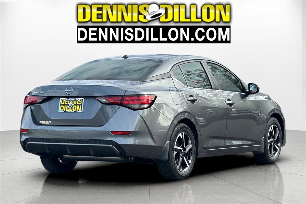 Gun Metallic 2025 Nissan Sentra SV 4D Sedan FWD CVT with Xtronic 2.0L I4 DOHC 16" Alloy Wheels, 4-Wheel Disc Brakes, 8 Speakers, ABS brakes, Air Conditioning, All-Weather Package, Alloy wheels, AM/FM radio: SiriusXM, Auto High-beam Headlights, Blind Spot Warning, Body Colored Splash Guards (4-Piece), Brake assist, Bumpers: body-color, Carpeted Floor Mats w/Trunk Mat, Clear Rear Bumper Protector, Delay-off headlights, Door Sill Plates, Driver door bin, Driver vanity mirror, Dual front impact airbags, Dual front side impact airbags, Dual Zone Auto Climate Control, Electronic Stability Control, Four wheel independent suspension, Front anti-roll bar, Front Bucket Seats, Front Center Armrest, Front reading lights, Fully automatic headlights, Heated Exterior Mirrors, Heated Front Seats, Illuminated entry, Knee airbag, Leather-Wrapped Heated Steering Wheel, Low tire pressure warning, NissanConnect featuring Apple CarPlay and Android Auto, Occupant sensing airbag, Outside temperature display, Overhead airbag, Overhead console, Panic alarm, Passenger door bin, Passenger vanity mirror, Power door mirrors, Power steering, Power windows, Radio data system, Radio: AM/FM w/RDS/MP3/Aux-In, Rear anti-roll bar, Rear Parking Sensors, Rear side impact airbag, Rear window defroster, Remote Engine Start, Remote keyless entry, Security system, Speed control, Speed-sensing steering, Split folding rear seat, Steering wheel mounted audio controls, Tachometer, Telescoping steering wheel, Tilt steering wheel, Traction control, Trip computer, Upgraded Cloth Seat Trim, Variably intermittent wipers.