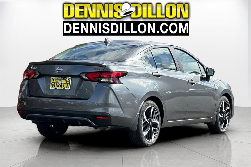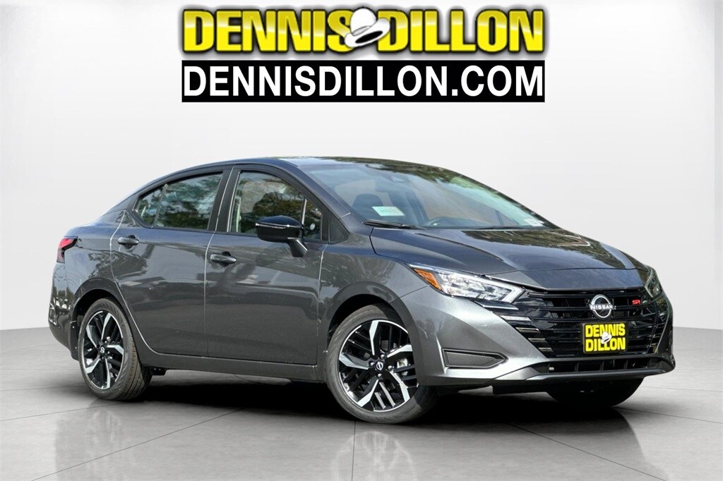 Gun Metallic 2025 Nissan Versa 1.6 SR 4D Sedan FWD CVT 1.6L I4 DOHC 16V 17" Aluminum Alloy Wheels, 6 Speakers, ABS brakes, Air Conditioning, Alloy wheels, AM/FM radio: SiriusXM, Apple CarPlay/Android Auto, Auto High-beam Headlights, Automatic temperature control, Blind Spot Warning, Brake assist, Bumpers: body-color, Carpeted Floor Mats & Trunk Mat (5-Piece Set), Delay-off headlights, Driver door bin, Driver vanity mirror, Dual front impact airbags, Dual front side impact airbags, Electronic Stability Control, Emergency communication system, Front anti-roll bar, Front Bucket Seats, Front Center Armrest, Front reading lights, Front wheel independent suspension, Fully automatic headlights, Heated door mirrors, Heated Front Bucket Seats, Heated front seats, Illuminated entry, Knee airbag, Leather steering wheel, Low tire pressure warning, Occupant sensing airbag, Outside temperature display, Overhead airbag, Panic alarm, Passenger door bin, Passenger vanity mirror, Power door mirrors, Power steering, Power windows, Radio data system, Radio: AM/FM Audio System, Rear Parking Sensors, Rear side impact airbag, Rear window defroster, Remote keyless entry, Shopping Bag Hooks, Speed control, Splash Guards, Split folding rear seat, Spoiler, SR Fabric Seat Trim, Steering wheel mounted audio controls, Tachometer, Telescoping steering wheel, Tilt steering wheel, Traction control, Trip computer, Trunk Net, Trunk Package, Turn signal indicator mirrors, Variably intermittent wipers.