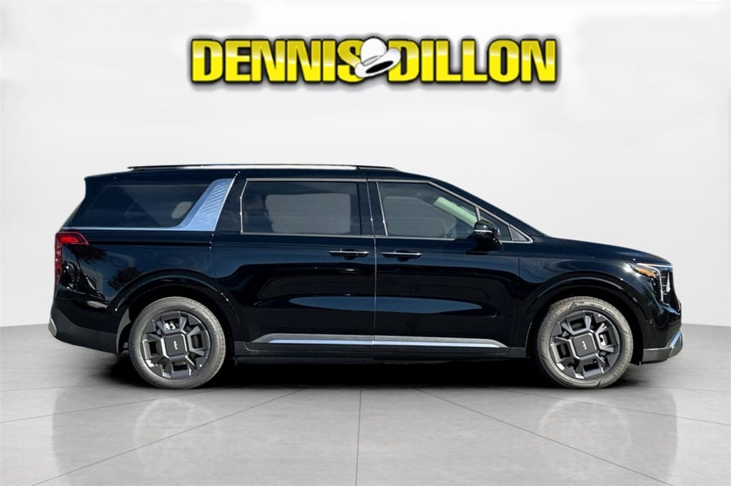 Aurora Black Pearl 2026 Kia Carnival Hybrid SX FWD 6-Speed Automatic 1.6L I4 DGI Hybrid Turbocharged DOHC 16V LEV3-SULEV30 3rd row seats: split-bench, 4-Wheel Disc Brakes, 8 Speakers, ABS brakes, Air Conditioning, Alloy wheels, AM/FM radio: SiriusXM, Apple CarPlay & Android Auto, Artificial Leather Seat Trim, Auto High-beam Headlights, Automatic temperature control, Brake assist, Bumpers: body-color, Cargo Mat, Cargo Net, Carpeted Floor Mats (8-Passenger), Compass, Delay-off headlights, Driver door bin, Driver vanity mirror, Dual front impact airbags, Dual front side impact airbags, Electronic Stability Control, Emergency communication system, Exterior Parking Camera Rear, Four wheel independent suspension, Front anti-roll bar, Front Bucket Seats, Front Center Armrest, Front dual zone A/C, Front fog lights, Front reading lights, Fully automatic headlights, Heated & Ventilated Front Bucket Seats, Heated door mirrors, Heated front seats, Illuminated entry, Knee airbag, Leather Shift Knob, Leather steering wheel, Low tire pressure warning, Memory seat, Navigation System, Occupant sensing airbag, Outside temperature display, Overhead airbag, Overhead console, Panic alarm, Passenger door bin, Passenger vanity mirror, Power 2nd-Row Moonroof, Power door mirrors, Power driver seat, Power Liftgate, Power moonroof, Power passenger seat, Power steering, Power windows, Radio: Navigation System w/SiriusXM, Rain sensing wipers, Rear air conditioning, Rear anti-roll bar, Rear reading lights, Rear window defroster, Rear window wiper, Reclining 3rd row seat, Remote keyless entry, Security system, Speed control, Speed-sensing steering, Split folding rear seat, Spoiler, Steering wheel mounted audio controls, Tachometer, Telescoping steering wheel, Tilt steering wheel, Traction control, Trip computer, Turn signal indicator mirrors, Variably intermittent wipers, Ventilated front seats, Wheels: 19" Black Alloy, Wheels: 19" Black D-Cut Customizing.