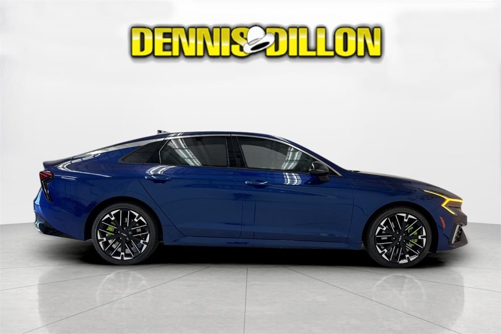 Yacht Blue 2026 Kia K5 GT FWD 8-Speed DCT I4 4-Wheel Disc Brakes, 6 Speakers, ABS brakes, Air Conditioning, Alloy wheels, AM/FM radio: SiriusXM, Auto High-beam Headlights, Automatic temperature control, Brake assist, Bumpers: body-color, Cargo Net, Carpeted Floor Mats, Delay-off headlights, Driver door bin, Driver vanity mirror, Dual front impact airbags, Dual front side impact airbags, Electronic Stability Control, Emergency communication system: Kia Connect (includes 1 year free trial), Four wheel independent suspension, Front anti-roll bar, Front Bucket Seats, Front Center Armrest, Front dual zone A/C, Front fog lights, Front reading lights, Fully automatic headlights, Heated door mirrors, Heated front seats, Heated Sport Bucket Seats, Illuminated entry, Knee airbag, Leather Shift Knob, Leather steering wheel, Low tire pressure warning, Navigation System, Occupant sensing airbag, Outside temperature display, Overhead airbag, Overhead console, Panic alarm, Passenger door bin, Passenger vanity mirror, Power door mirrors, Power driver seat, Power moonroof, Power steering, Power windows, Radio data system, Radio: AM/FM Audio System, Rear anti-roll bar, Rear reading lights, Rear seat center armrest, Rear side impact airbag, Rear window defroster, Remote keyless entry, Security system, Speed control, Speed-sensing steering, Split folding rear seat, Sport steering wheel, Steering wheel mounted audio controls, SynTex Seat Trim, Tachometer, Telescoping steering wheel, Tilt steering wheel, Traction control, Trip computer, Turn signal indicator mirrors, Variably intermittent wipers, Wheels: 19" x 8.0J Gloss Black Machined Finish Alloy.
