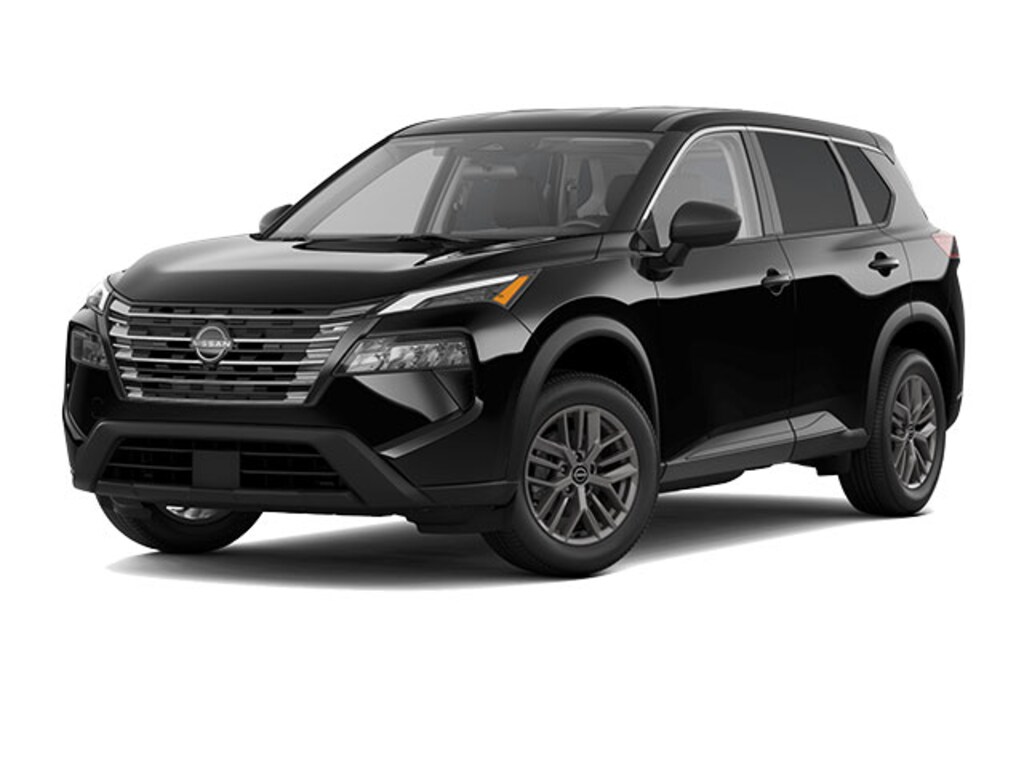 Super Black 2026 Nissan Rogue S 4D Sport Utility AWD CVT with Xtronic 1.5L DOHC 17" Alloy Wheels, 4 Speakers, 4-Wheel Disc Brakes, ABS brakes, Air Conditioning, Alloy wheels, AM/FM radio: SiriusXM, Apple CarPlay/Android Auto, Auto High-beam Headlights, Black Splash Guards (Set of 4) (B92), Blind Spot Warning, Brake assist, Bumpers: body-color, Cloth Seat Trim, Delay-off headlights, Driver door bin, Driver vanity mirror, Dual front impact airbags, Dual front side impact airbags, Electronic Stability Control, First Aid Kit, Floor Mats w/1-Piece Cargo Area Protector, Four wheel independent suspension, Front anti-roll bar, Front Bucket Seats, Front Center Armrest, Front reading lights, Fully automatic headlights, Illuminated entry, Knee airbag, Low tire pressure warning, Occupant sensing airbag, Outside temperature display, Overhead airbag, Overhead console, Panic alarm, Passenger door bin, Passenger vanity mirror, Power door mirrors, Power steering, Power windows, Radio data system, Radio: AM/FM NissanConnect, Rear anti-roll bar, Rear seat center armrest, Rear side impact airbag, Rear window defroster, Rear window wiper, Remote keyless entry, Speed control, Speed-sensing steering, Speed-Sensitive Wipers, Split folding rear seat, Spoiler, Steering wheel mounted audio controls, Tachometer, Telescoping steering wheel, Tilt steering wheel, Traction control, Trip computer, USB Charging Cable Set, Variably intermittent wipers.