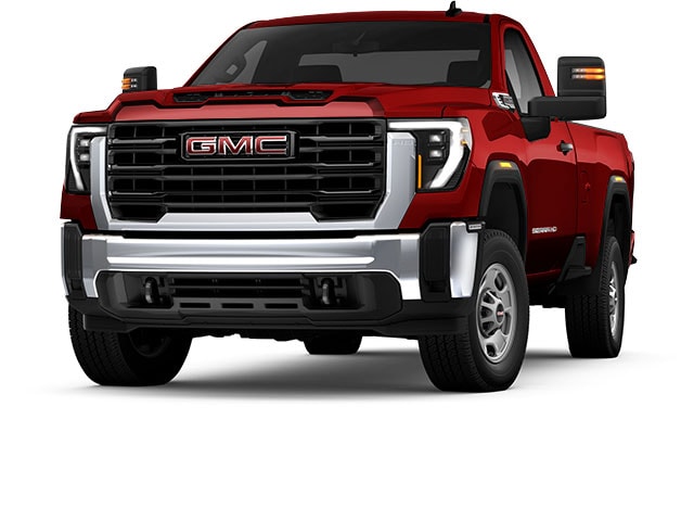 The standard features of the GMC Sierra 2500HD Pro include 6.6L V-8 401hp engine, 10-speed automatic transmission with overdrive, 4-wheel anti-lock brakes (ABS), Side seat mounted airbags, Curtain 1st row overhead airbag, Airbag occupancy sensor, Air conditioning, 17" steel wheels, Cruise control, ABS and driveline traction control, Electronic stability